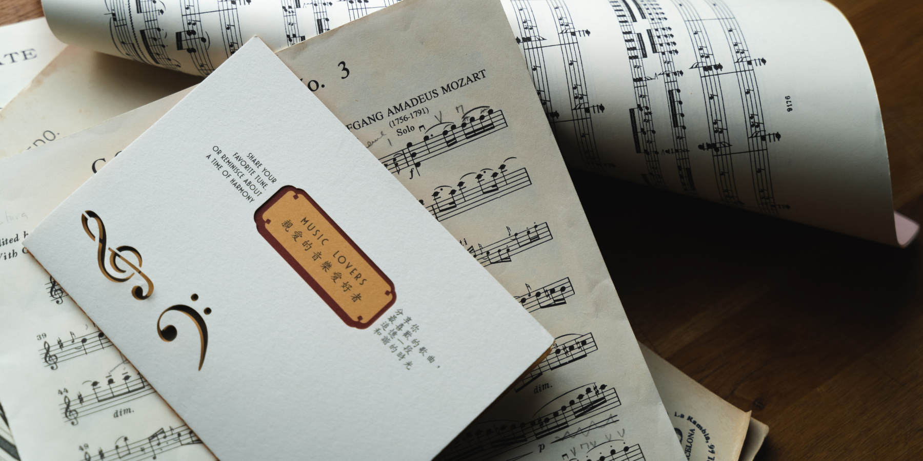 Music is a universal language that everyone can enjoy. While there are different styles of music to choose from, music is a shared experience through which we can spark conversation and culture. We can use our memories of learning melodies, attending concerts, and meeting artists to create our own version of music "notes". Music is also one form of harmony, which we can experience anytime we feel in-sync with people or places. We hope that you can use this card to write your own "notes" on harmony.