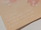- Translucent & Cotton Papers: This two-ply card is made with soft pink translucent paper on the exterior and cream cotton paper on the interior. The two layers are bound together with light pink thread.