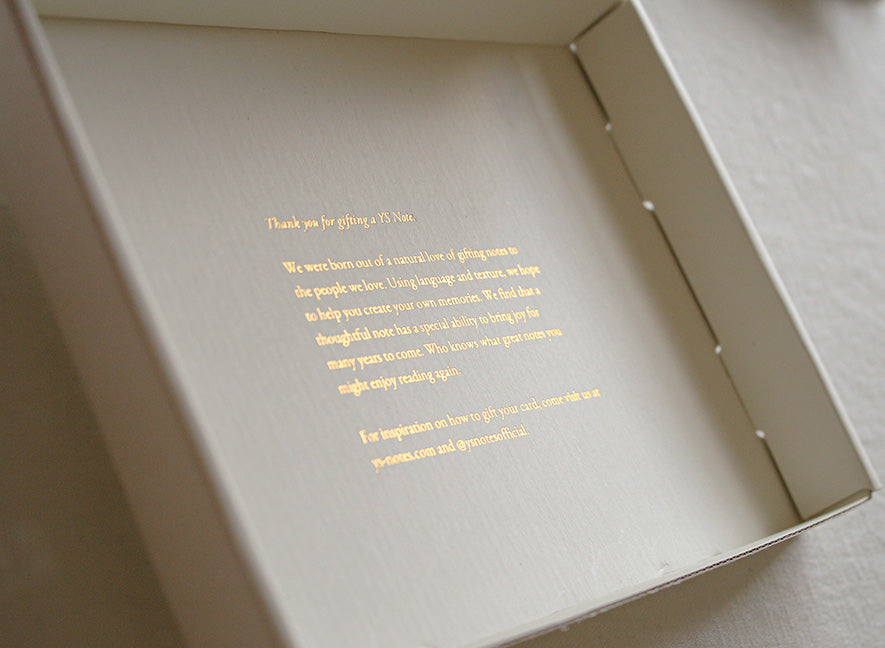 For those who would like purchase this item as a gift and and include a gift message, please e-mail us at hello@ys-notes.com with your order number and short message.