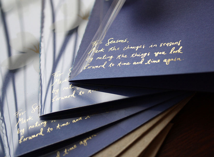 This Collection Box is an ideal set for those who have a few important celebrations in mind, and those who enjoy marking the passage of time. From anniversary letters, to simple reminders of how proud you are of someone, our Dark Season card transforms your words into a beautiful keepsake.